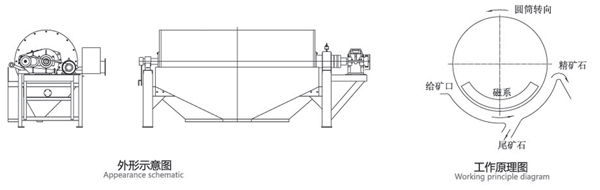 CTS型順流濕式磁選機(jī)適用于濕式選別礦石粒度為6~0mm的較粗粒度強(qiáng)磁性物料的粗選和精選,或者除去非磁性礦物中混雜的強(qiáng)磁性礦物。本機(jī)可以連續(xù)給礦和排礦,磁場強(qiáng)度大,磁場梯度高,工作間隙大,具有較高的處理能力。亦可多臺(tái)串連工作。其原理是當(dāng)?shù)V漿進(jìn)入磁場區(qū)時(shí),其中強(qiáng)磁性礦物被吸附在圓筒表面,弱磁性和非磁性礦物被水流沖洗排出,而吸附在圓筒表面上的磁性礦物隨圓筒旋轉(zhuǎn),被帶出磁場區(qū),用沖洗水沖入精礦槽中,完成分選作業(yè)。